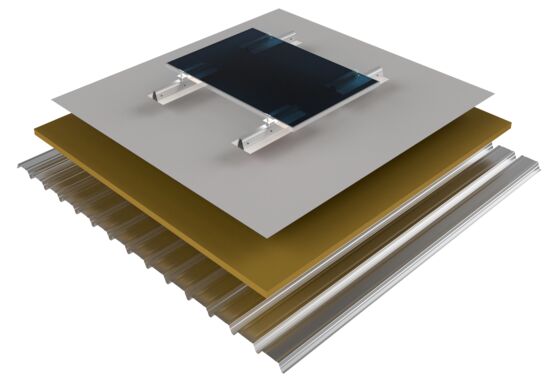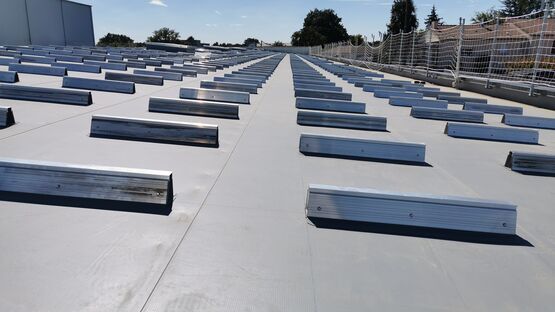 En toitures-terrasses neuves ou existantes, ce système est composé des rails en aluminium (Alliage 6060) muni d’ailettes en membrane en PVC.