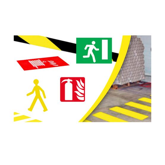 Ces différents adhésifs de marquage des sols permettent une identification claire et significative afin de repérer des passages protégés, des silhouettes, des extincteurs, des portes coupe-feu, des issues de secours, etc.