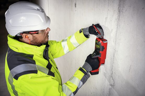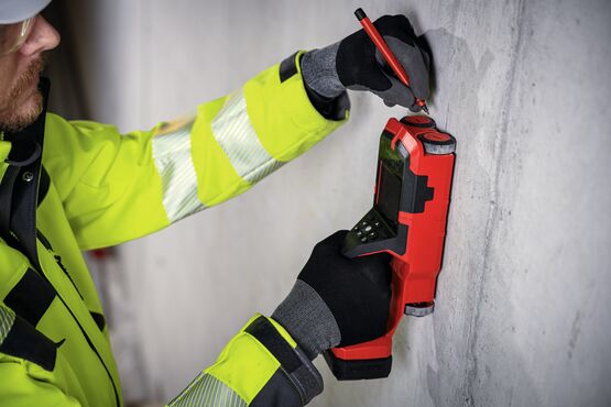 - Localisation d'objets encastrés pour la prévention des chocs lors du forage, du carottage, de la découpe ou du rainurage (jusqu'à 85 mm de profondeur, selon le matériau) sur le mur