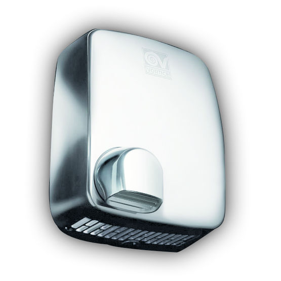 - Sèche-mains automatique mural de lavabo RONDEO, conçu pour un encombrement minimum et des temps de séchage rapides et efficaces.