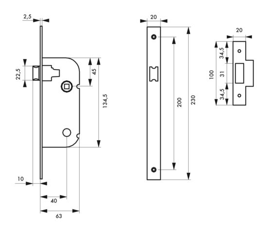 | Matériaux : | acier - coffre, têtière, gâche ; demi-tour alliage |