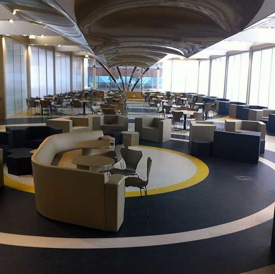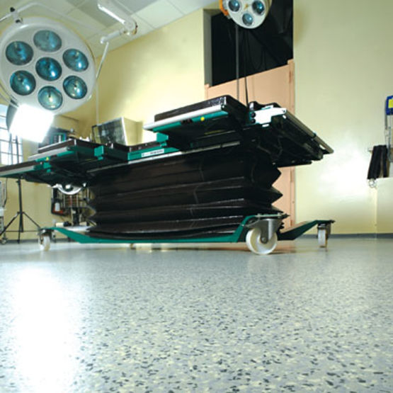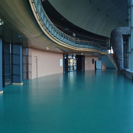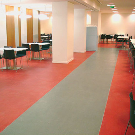 Le revêtement de sol coulé sans joint pour trafic intense TERRAZOFLEX type C offre un amortissement acoustique. Il est proposé avec une surface écologique sans émission de COV après séchage.