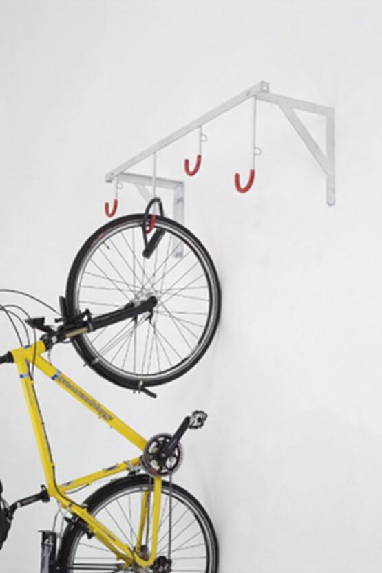 4. Installation simplifiée : Le montage mural ou au plafond est possible à une hauteur de 200 cm minimum, avec un débattement de 350 mm pour accueillir toutes tailles de vélos. Ce dispositif assure ainsi une utilisation aisée et un rangement optimisé, même dans les espaces réduits.