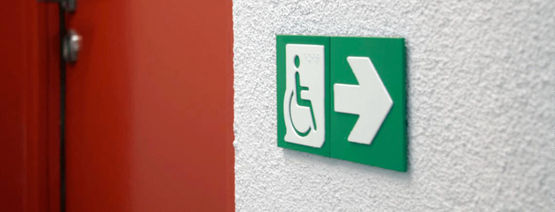 Avec une identification du refuge réalisée par pictogramme, le flux d’évacuation des personnes à mobilité réduite (PMR) peut parfois différer du flux d’évacuation principal.