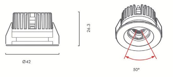 2. Orientation flexible : Le luminaire est orientable à 50°, permettant d'ajuster l'éclairage selon les besoins spécifiques de mise en valeur.