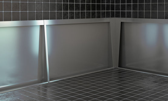 | Options : | jonction entre stalle URPX-J, cache-angle URPX-ANG (90° ou sur-mesure), cache latéral visible URPX-LAT (non posée contre mur), séparateur URPX-SEP |