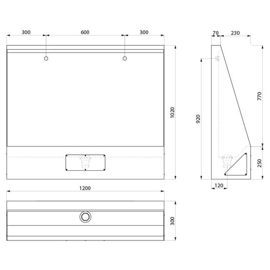 Stalle d'urinoir LP à poser L.1200 alim. arrière Inox 304 satiné | Réf. 130310