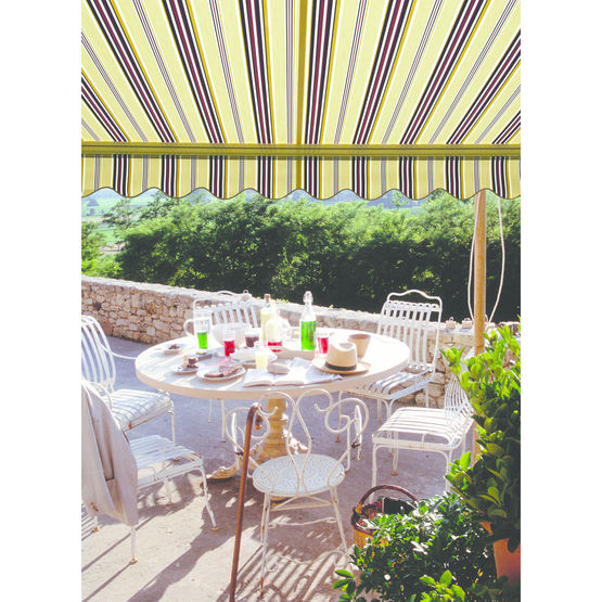 | Options : | télécommande radio, bras croisés, anémomètre, marquage sur toile et/ou lambrequin. |