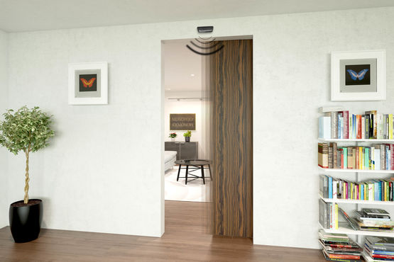 Système coulissant droit motorisé pour portes en bois | WIDOOR