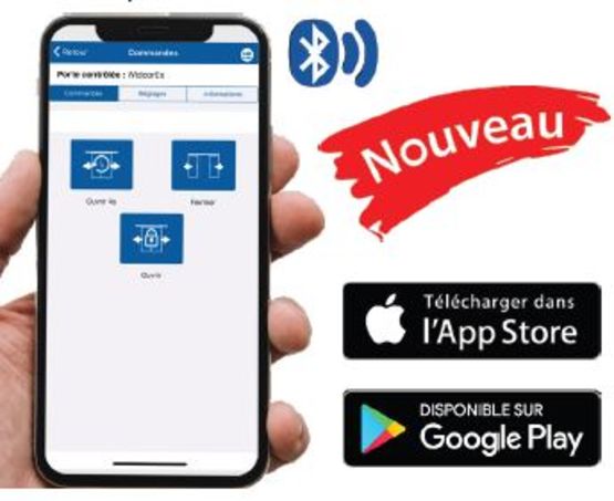 Nouveau : application WIDOOR permettant le pilotage à distance de l’ouverture et de la fermeture de la porte coulissante motorisée à travers un Smartphone.