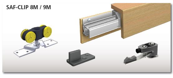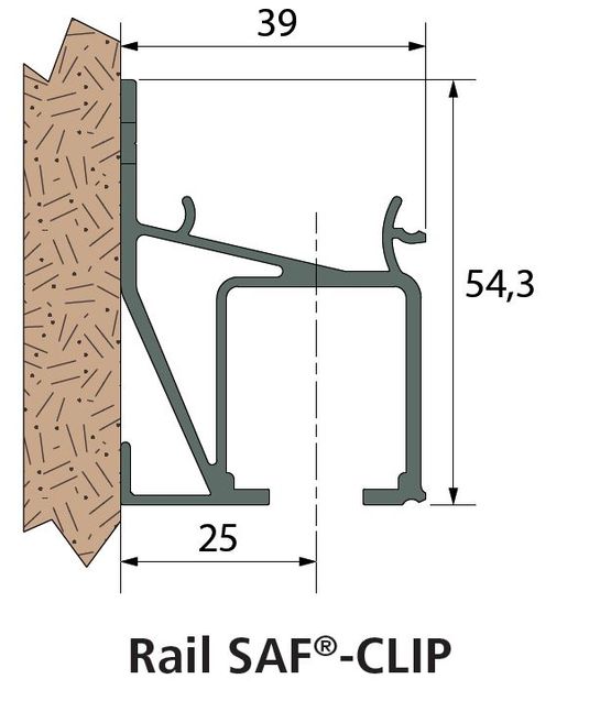 SAF-CLIP décrit un déplacement droit sur un rail en aluminium de finition anodisée.