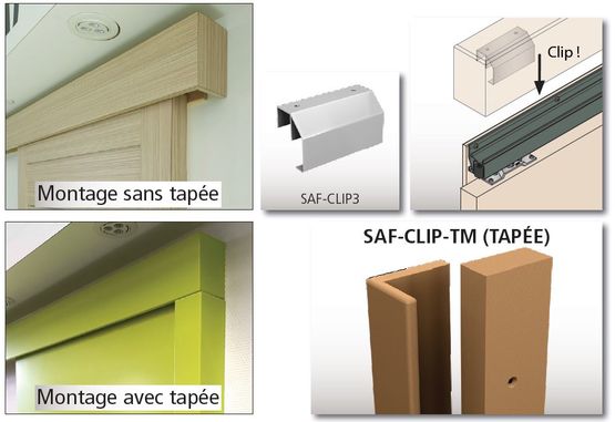 Le système SAF-CLIP révèle une finition soignée et est disponible en deux versions : kit prêt à la pose avec bandeau MDF à peindre sans tapée, ou ensemble prêt à la pose sans bandeau et sans tapée.