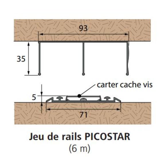 Le système PICOSTAR 18 est disponible en ensembles, pour deux ou 3 panneaux, avec des rails en aluminium anodisé ou de finition laquée blanc RAL 9016.
