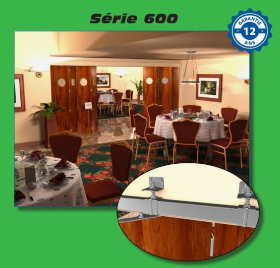 Cet équipement pour ouverture et fermeture est très recommandé pour une séparation en structure légère dans les grandes salles, quelle que soit leur vocation : restauration, conférence, spectacle … etc. Pour un fonctionnement optimal, la largeur des panneaux ne doit pas excéder les 90 cm. Permettant de porter des portes de plus de 500 kg, il nécessite cependant un support supplémentaire côté refoulement ainsi que des supports 8578 MC ou 8578 ML.