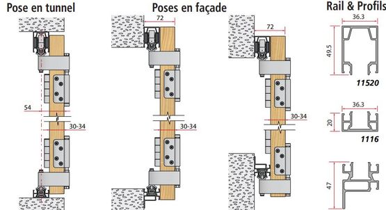 Grâce à ses galets montés sur roulements à billes et équipés de rotule, ce système ingénieux garantit une qualité de déplacement optimale. Les rails en aluminium sont également proposés en finition anodisée, brute et RAL.