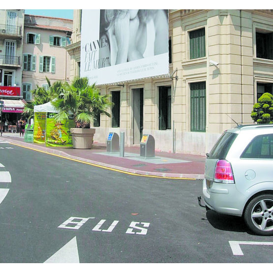 - Équipé d'une borne avec tiroirs basculants pour tri sélectif et trappe à clé.