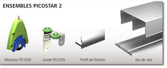 Système pour portes de placard rail aluminium capacité par porte 55 Kg | PICOSTAR 2