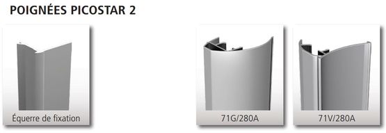 Le système PICOSTAR 2 est commercialisé en 2 versions : ensemble anodisé naturel en longueur de 2 m pour deux panneaux, et ensemble anodisé naturel de longueur 3 m pour 3 panneaux.