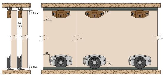 Système pour portes de placard rail aluminium et PVC capacité 60 Kg | PICO 60