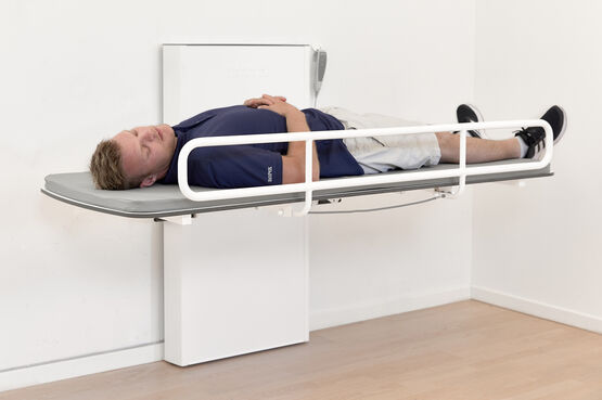 Fonctionnant à une vitesse de 26 mm/s, la table à langer Vario peut supporter une charge allant jusqu'à 200 kg (conformément à la norme EN12182:2012). Elle est disponible en deux versions : avec ou sans barrière latérale.