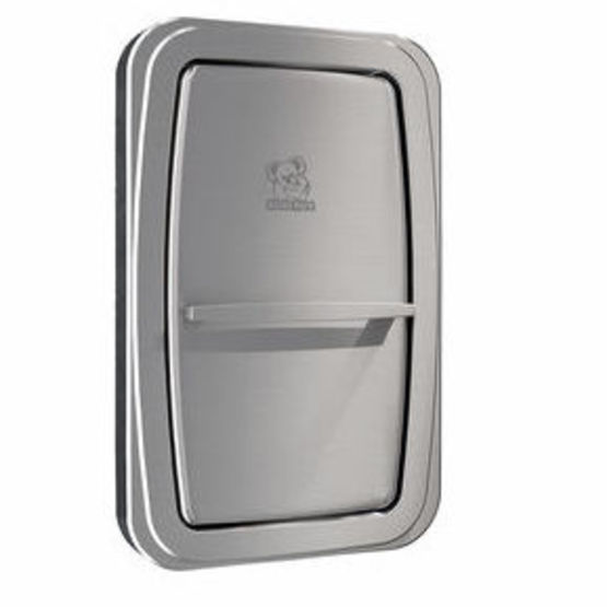 Table à langer inox pour bébé verticale professionnelle murale relevable pour collectivités, version murale ou encastré pour encombrement minimum.