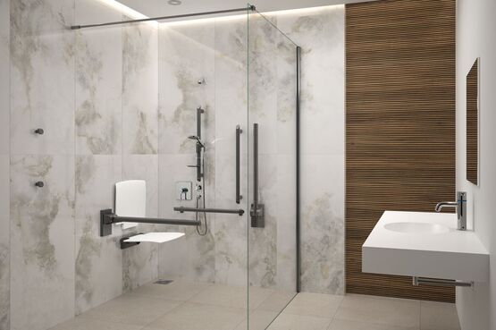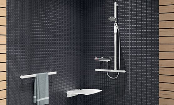 La tablette porte-savon de Delabie est adaptée pour être utilisée avec les barres de douche Be-Line et est recommandée pour les installations destinées aux personnes à mobilité réduite.