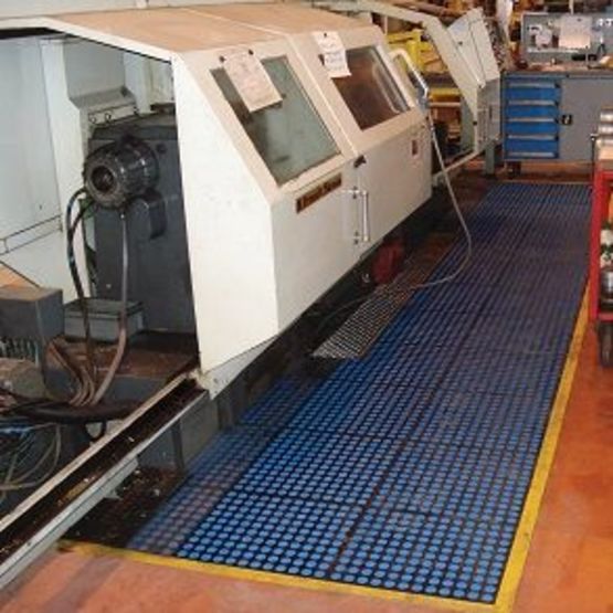 En plus d’être modulable et de s’adapter à toutes les configurations d’ateliers et de machines grâce à ses clips de fixation, ce tapis antifatigue isole du froid et absorbe également les vibrations des machines environnantes.