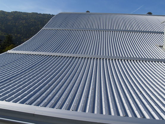 Tôle nervurée en aluminium ou acier prélaqué en 8 teintes pour toitures et bardages industriels ou civils. Tôle recouverte d’une couche de 10 mm de polyuréthane expansé haute densité coloré et d’un film en polyuréthane et intégrant un tissu ou une couche d’aluminium centésimal en sous-face. Profilé d’un mètre de largeur et 28 mm de hauteur de nervures. Disponible également en aluminium naturel, aluzinc ou cuivre. Possibilité de cintrage simple ou par croquage.