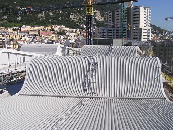 | Compléments de gamme : | faîtière cintrée par croquage, plate, crantée à charnière, ou moulée à charnière, raccord pente mur moulé, base d'écoulement cheminée, élément de fermeture de nervure, raccord pente mur cranté, joint de fermeture sous/sur onde, élément de base pour lucarnes, châssis ouvrant manuel ou électrique. |