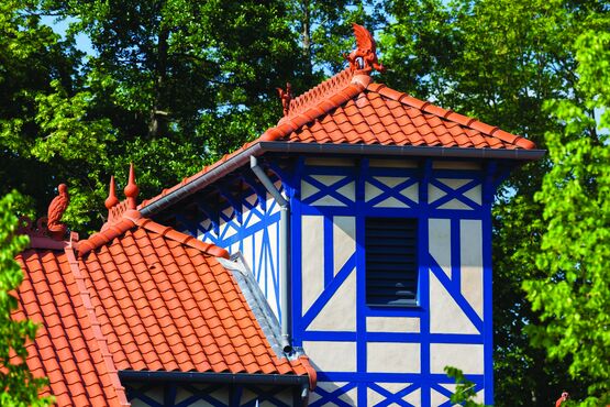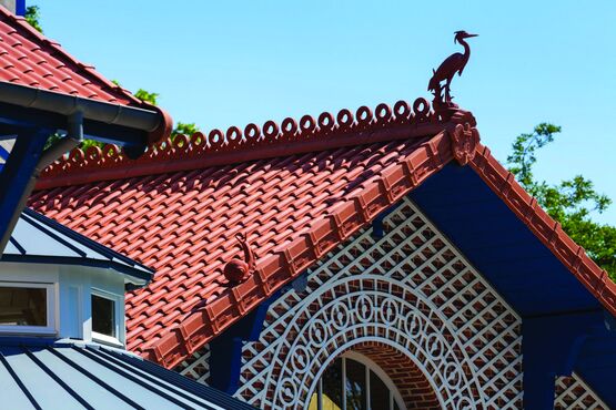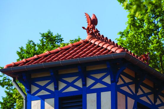 | Accessoires : | tuile double bourrelets, chatière et grille, tuile à rabat gauche ou droit, faîtière demi-ronde, fronton, arêtier demi-ronde, tuile à douille et lanterne. |