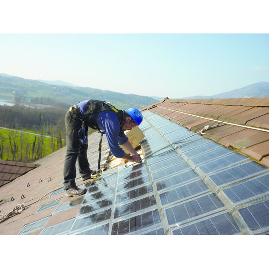 | Mise en oeuvre : | pose à emboîtement des tuiles avec branchement électrique en parallèle. |