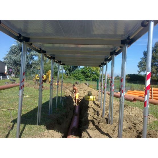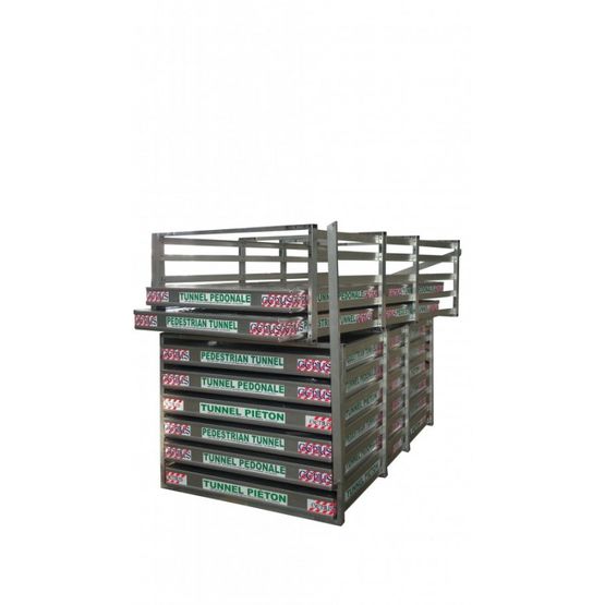 Ce tunnel se compose de modules dont l’unité pèse 31 Kg et supporte un poids de 150 Kg avec une surface non circulable.