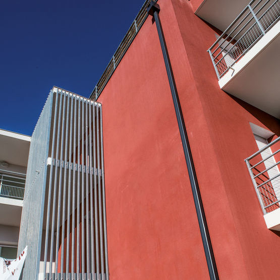 La fixation de ces tuyaux de descente en aluminium s’effectue à l’aide de pattes d’épaisseur 15/10ème placées à l’arrière.
