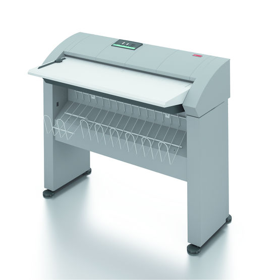 « L’Océ 940 est une plieuse hors ligne autonome et efficace pour tous les documents grands formats. Son faible encombrement (4m²) et son outil silencieux lui permettent de s’adapter à tous les environnements. Elle peut plier jusqu’à 6 documents A0 par minute et le tout avec une excellente qualité de pliage. De plus, elle accepte tous types de supports pour traceur ainsi que les papiers ordinaires pour réaliser un pliage extrêmement précis et conforme aux normes industrielles. »