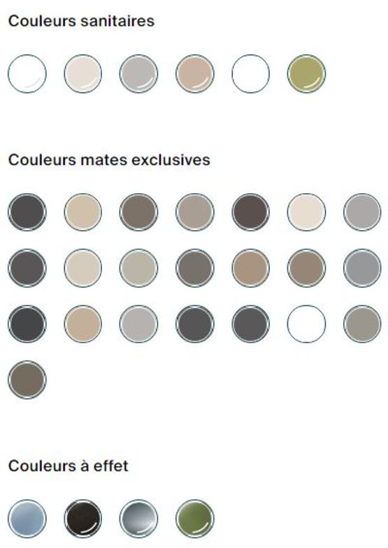 - Plusieurs teintes au choix : couleurs sanitaires, mates exclusives ou à effet