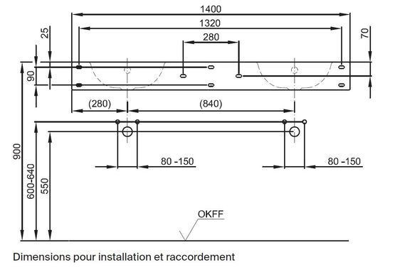 2. Entretien facile : Grâce à sa surface lisse et non poreuse, l'accumulation de saleté est réduite, rendant le nettoyage de cette double vasque une tâche simple et rapide.