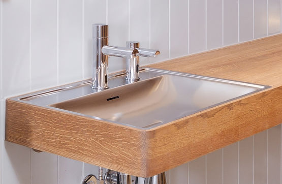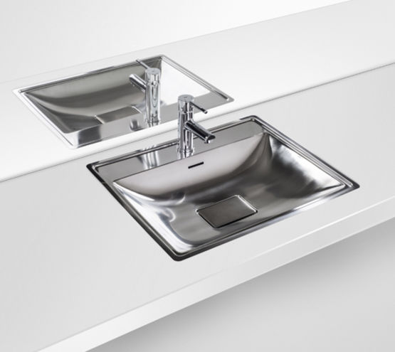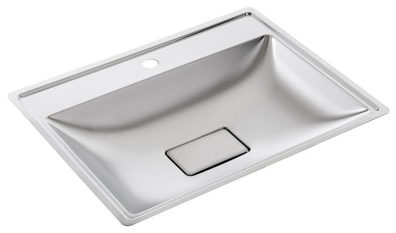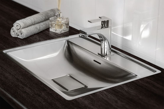 - Vasque rectangulaire inox à encastrer avec bonde de vidage dissimulée et plage de robinetterie intégrée, élégante et design