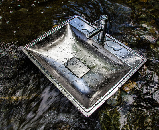 - Grille de vidage intégrée écoulement libre, dissimulée par cache bonde amovible inox.