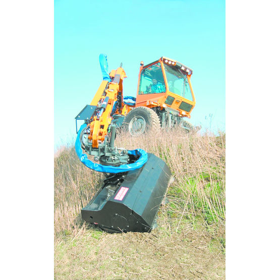 1. Polyvalence dynamique : Le MM 150 VR supporte une multitude d'outils montés sur sa flèche télescopique latérale. Ce qui permet d’aborder les tâches comme le fauchage, l'élagage ou le curage des fossés efficacement, même sur des terrains complexes et variés.