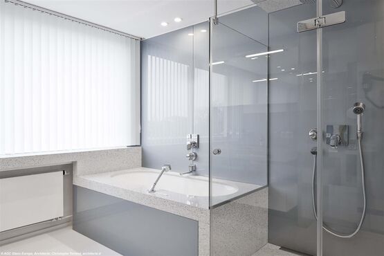 La diversité des formats, épaisseurs et finitions permet une fabrication sur mesure des cabines de douche. Les versions Planibel Clearvision offrent une transparence optimale sans teinte verdâtre, tandis que Matelux apporte un équilibre entre intimité et diffusion de la lumière. Les verres Imagin imprimés en relief ajoutent une dimension décorative tout en restant compatibles avec les procédés de transformation tels que la trempe thermique.