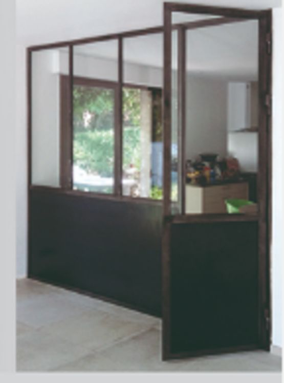 Dotée d’un cadre tube de 30/34 (et T35) et d’un soubassement tôle ou vitrage, la cloison intérieure est équipée de parcloses, vis de parcloses, vitrage feuilleté 33/2 et d’un joint kiso.