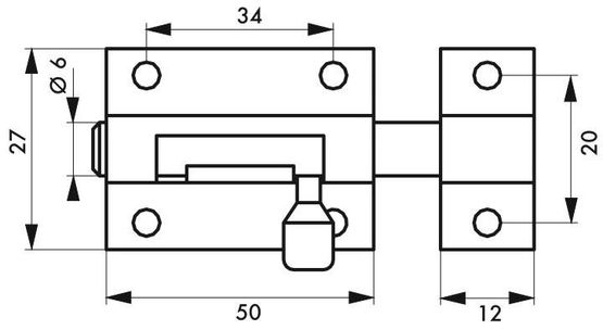 Verrou pour porte de meuble targette inox pêne rond 50 mm