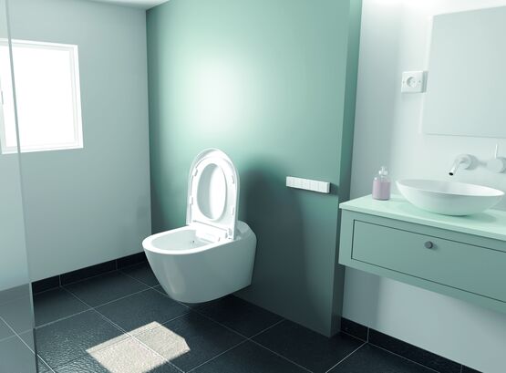| Accessoires : | colis comprenant la cuvette suspendue, l'abattant à frein de chute, la télécommande avec support, 1 flexible, 1 vanne quart de tour, 1 joint mural, visserie et cache, clé Allen pour raccordement électrique |
