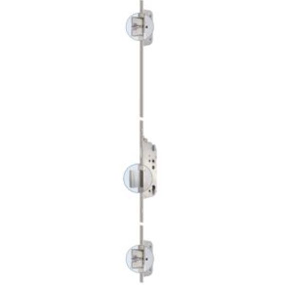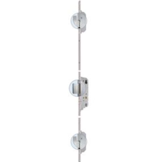 La serrure 3 points est une serrure multipoints, haute sécurité, ultra résistante aux tentatives d’effraction. Comme son nom l’indique, elle intègre trois points de fermeture latéraux situés en haut, en bas et au milieu de la porte auxquels viennent s’ajouter deux verrouillages verticaux situés en haut et en bas de la porte. Les trois emplacements de verrouillage se ferment en même temps, à l’aide d’une clé.